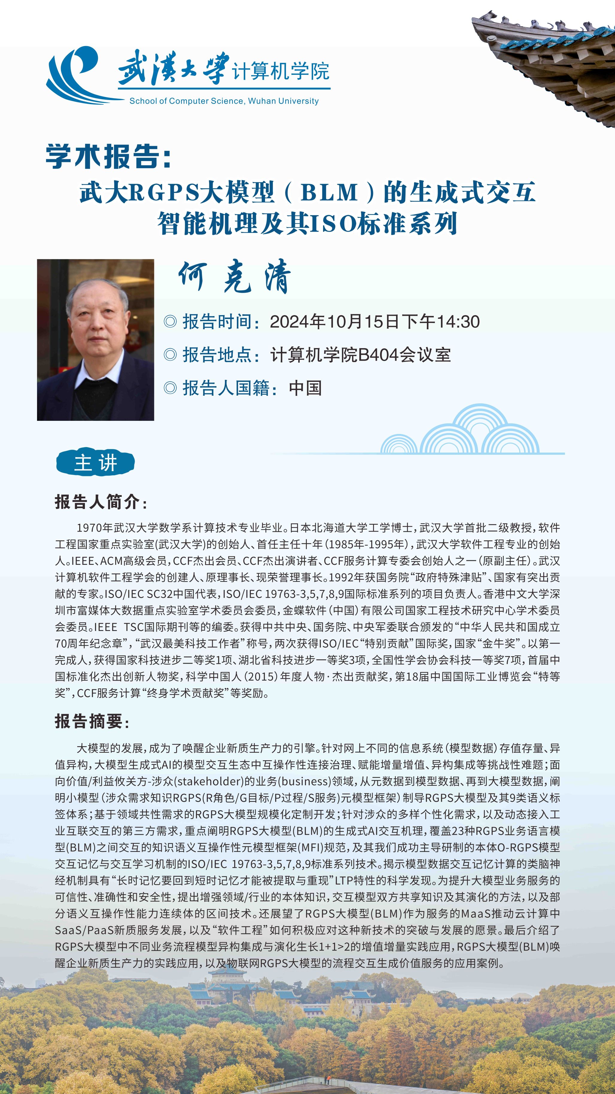 报告题目:武大 RGPS 大模型(BLM)的生成式交互智能机理及其 ISO 标准系列