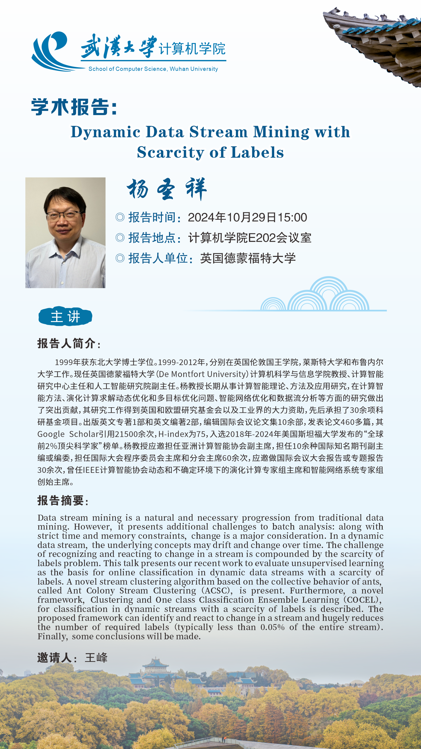 学术报告:Dynamic Data Stream Mining with Scarcity of Labels