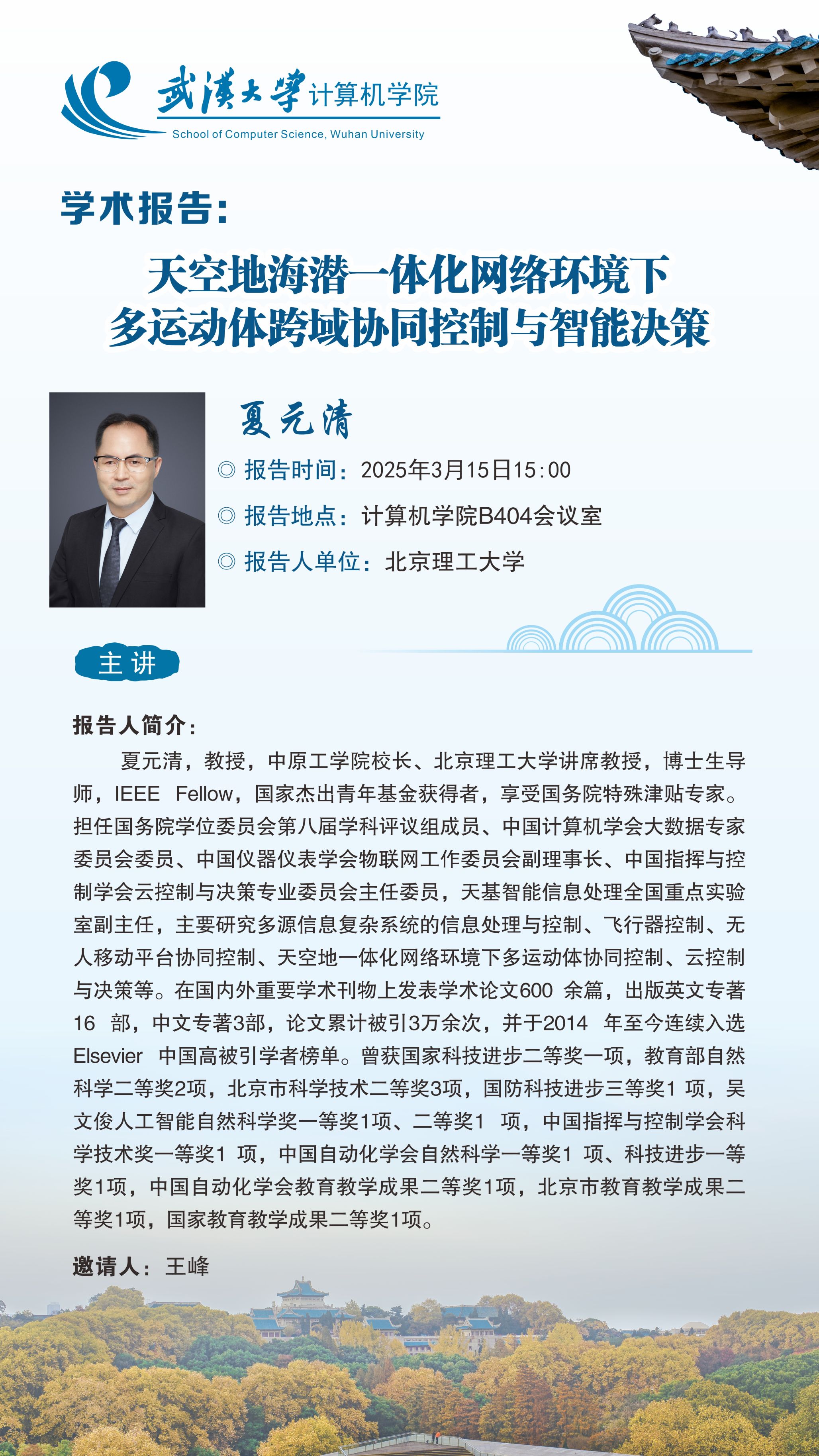 报告题目:天空地海潜一体化网络环境下多运动体跨域协同控制与智能决策