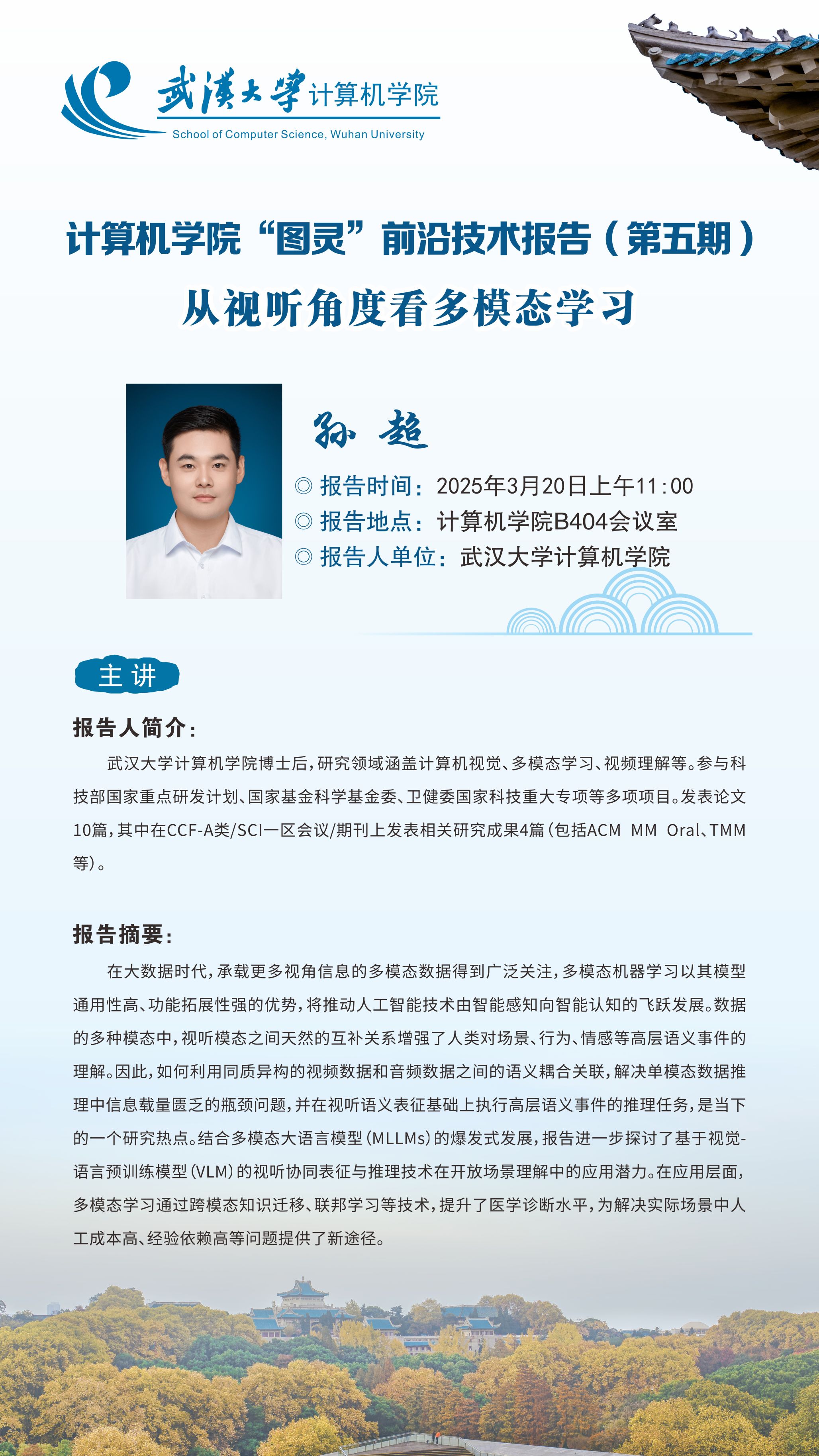 报告摘要:在大数据时代,承载更多视角信息的多模态数据得到广泛关注,多模态机器学习以其模型通用性高、功能拓展性强的优势,将推动人工智能技术由智能感知向智能认知的飞跃发展。数据的多种模态中,视听模态之间天然的互补关系增强了人类对场景、行为、情感等高层语义事件的理解。因此,如何利用同质异构的视频数据和音频数据之间的语义耦合关联,解决单模态数据推理中信息载量匮乏的瓶颈问题,并在视听语义表征基础上执行高层语义事件的推理任务,是当下的一个研究热点。结合多模态大语言模型(MLLMs)的爆发式发展,报告进一步探讨了基于视觉-语言预训练模型(VLM)的视听协同表征与推理技术在开放场景理解中的应用潜力。在应用层面,多模态学习通过跨模态知识迁移、联邦学习等技术,提升了医学诊断水平,为解决实际场景中人工成本高、经验依赖高等问题提供了新途径。