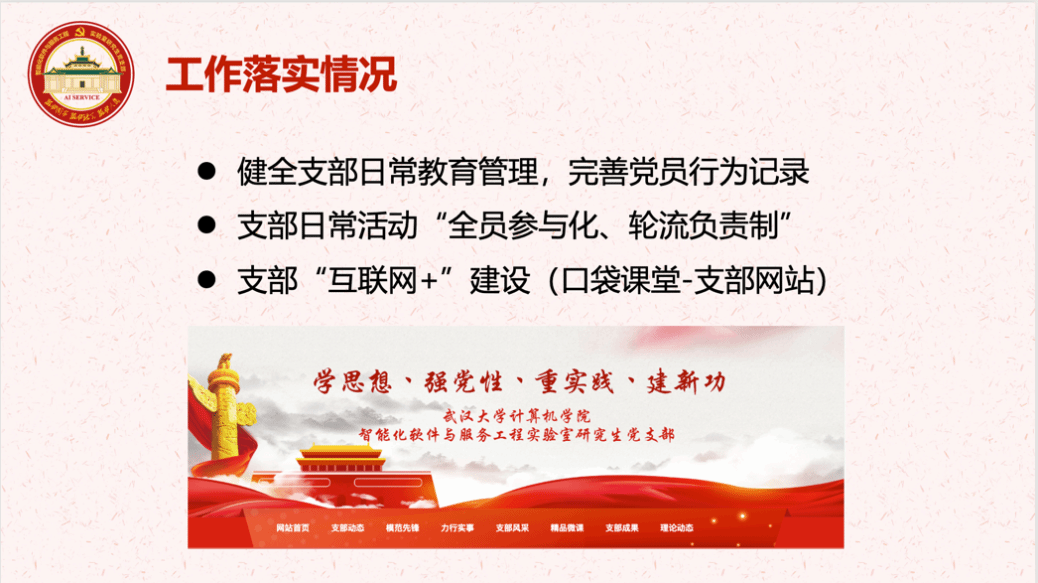 开好专题组织生活会,是一次政治体检,也是检验主题教育成效的一项重要内容。本次开展“学习贯彻习近平新时代中国特色社会主义思想主题教育”专题组织生活会暨新学期第一节党课,不仅是世界杯体彩智能化软件与服务工程实验室研究生党支部“活力创新工程”建设项目的重要内容之一,也是号召党员同志把思想和行动统一到习近平新时代中国特色社会主义思想和党的二十大精神上来的重要举措。希望各位党员同志以此为契机,在新学期凝心聚力,开拓进取,认真盘点、调查研究、整改整治问题清单,严格要求自己,有针对性地推进各项改进措施,争取早日成长为堪当民族复兴大任的时代新人。