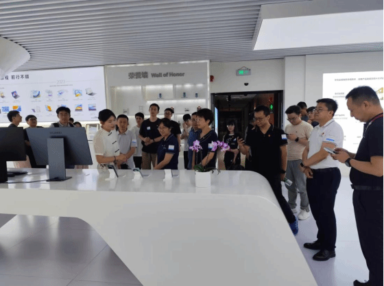参访师生首先参观了武研所产品展厅,听讲解员详细介绍了华为公司发展历程和华为产品特色,并展示了华为在智慧电力、智能矿山、智能制造、智慧医疗、智慧教育、智慧城市等领域的技术解决方案。师生们结合自身的研究方向,踊跃提出问题,向武研所的同志们进行请教与探讨。通过现场学习与交流提问,大家了解了业界最新的科技产品及其应用场景,明晰了自身科研方向与发展路径,坚定了建立高水平科技自立自强祖国的信心。