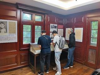 周恩来旧居纪念馆是根据其在珞珈山时期的生活陈设还原而成的革命历史博物馆,建筑格局简约大方,青瓦白墙,古老而庄重。旧居内依据“抗日救亡”、“周公莅汉”、“八办时光”、“风云际会”、“寓居珞珈”、“劫后重光”、“永志不忘”等主题,分为不同展厅,收藏有周恩来在珞珈山上生活时遗留下的桌椅、书柜等物件,古朴的陈设和陈列的历史文物更是直接将同学们带回那个动荡而曲折的革命年代。穿过尘封的历史大门,一幕幕中国共产党领导中国革命的光辉时刻在同学们眼前重现。