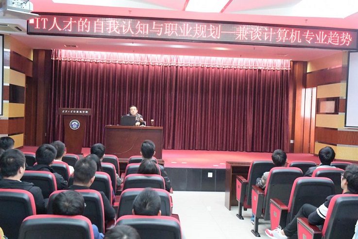 2017年11月14日,计算机学院“IT人才的自我认知与职业规划——兼谈计算机专业优势”职业规划生涯讲座在学院八楼报告厅隆重举行。讲座由院学生工作办公室主任赵健老师主讲,副院长彭正明主持,学院2017级非全日制全体硕士研究生参加了此次讲座。