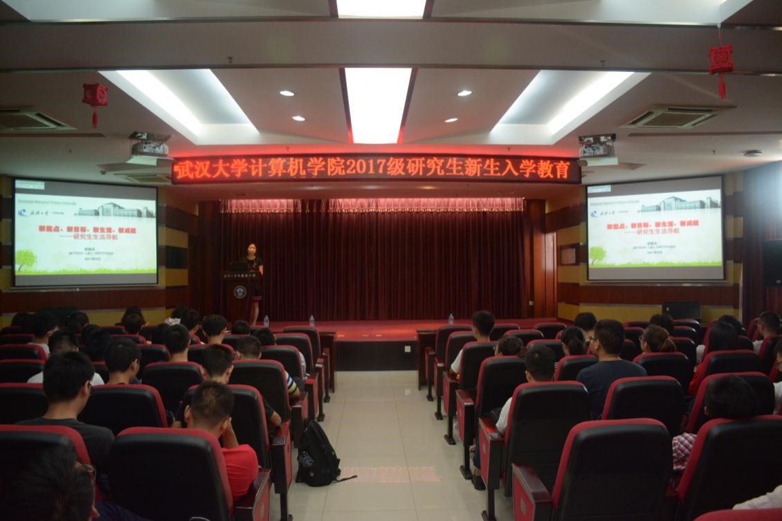 在这个桂花飘香的时节,计算机学院迎来了充满活力的2017级研究生新生。9月8日,学院隆重举行2017级研究生新生入学教育系列活动,计算机学院院长、博士生导师胡瑞敏教授,院党委书记沃闻达老师,院党委副书记胡俊英老师,武汉大学心理健康教育中心副主任章星波老师,武汉大学保卫部治安与综合治理办公室陈昌行主任,学院教学管理办公室、学生工作办公室相关老师,2017级317名全日制研究生同学参与了本次活动。