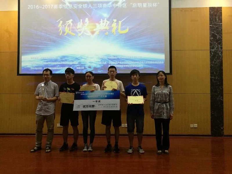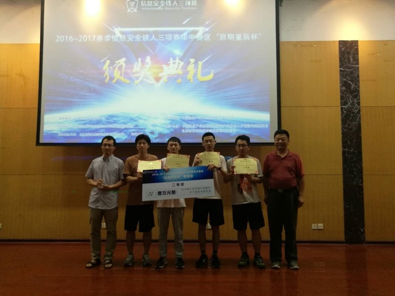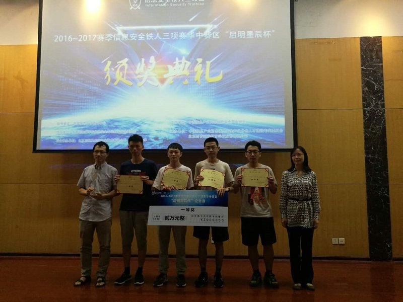 2017年6月10日,“启明星辰杯”2016-2017赛季信息安全铁人三项赛华中赛区比赛在河南郑州大学举行。由国家网络安全学院15081实验班本科生何适之担任队长、7位信息安全专业同学组成的Freepower队取得了个人赛、企业赛两项比赛的第一名以及数据赛第二名的好成绩,以总分第一的优异成绩,获得了本届中国信息安全铁人三项赛全国总决赛的参赛资格。