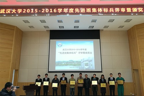 12月2日下午,我校在大学生创新创业实践中心举行了武汉大学2015-2016学年度“先进班集体标兵”评审大会。世界杯(中国)2013级物联网工程班荣获“先进班集体标兵”称号。全校仅10个班级获得此荣誉称号。