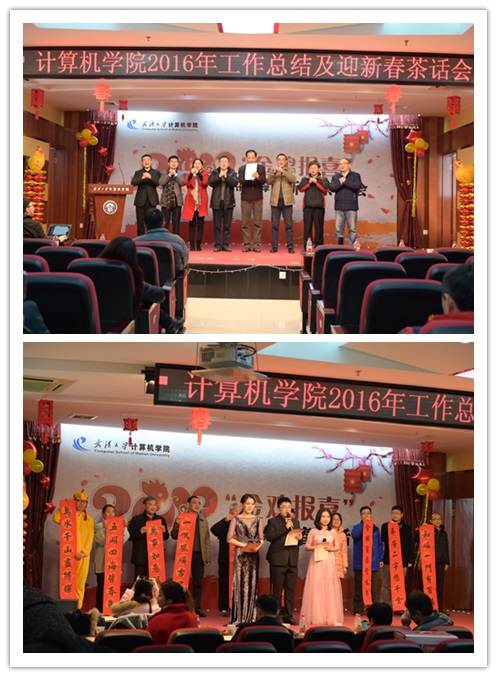 “红猴辞岁,金鸡报喜”。1月19日计算机学院2017年新春茶话会在八楼报告厅隆重举行,全院教职工、离退休职工欢聚一堂、载歌载舞,共庆丰收年,同迎新发展。