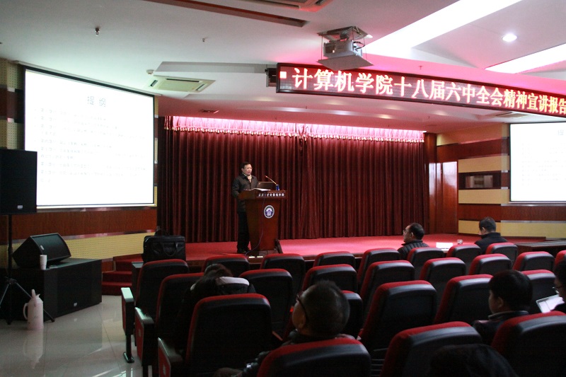 11月24日下午,计算机学院召开党员大会,邀请十八届六中全会精神武汉大学宣讲团成员、马克思主义学院李斌雄教授宣讲全会精神,并对《世界杯体彩新形势下党内政治生活的若干准则》和《中国共产党党内监督条例》进行了介绍和解读。学院全体教职工党员、全院学生预备党员、学生党支部、离退休党支部委员参加了学习。会议由院党委书记沃闻达主持。
