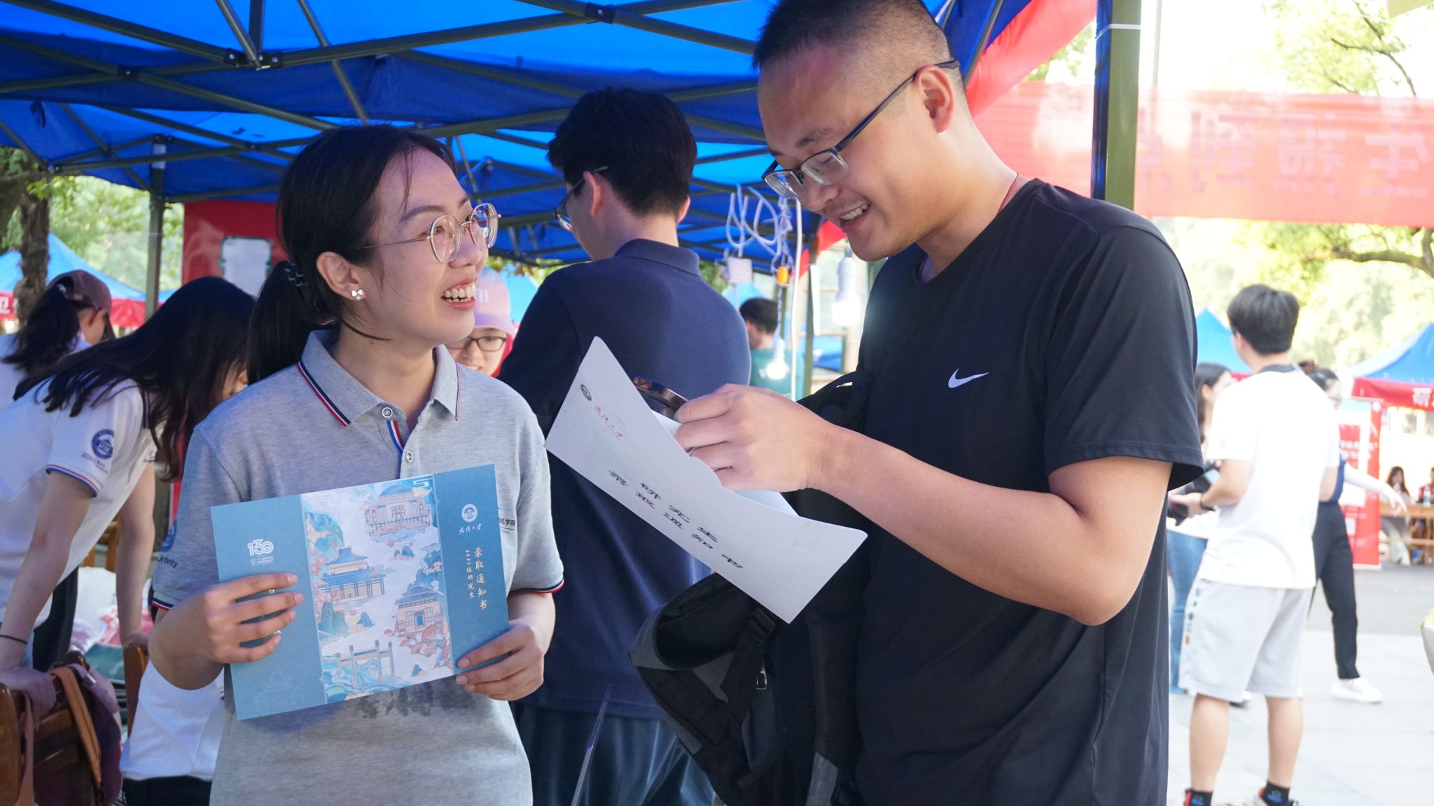 早上7点,世界杯(中国)2023级研究生迎新报到工作在信息学部图书馆门前的报道点有条不紊地展开。在志愿者们的指引下,新生们准备好录取通知书和其他身份证明。志愿者仔细核验每位新生的报到材料,发放校园卡和新生纪念品大礼包,为新生和家长提供细致温暖的服务。