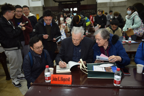 John E. Hopcroft是美国康奈尔大学教授、美国科学院工程院院士、中国科学院外籍院士、IEEE 会士、ACM会士。本次讲坛由计算机学院院长杜博教授主持,来自全校各学院的三百余名教师和学生参加,会场座无虚席。报告后多名师生向讲者提问,包括未来教育规划、研究生学习建议、算法分析等方面问题,现场气氛热烈。