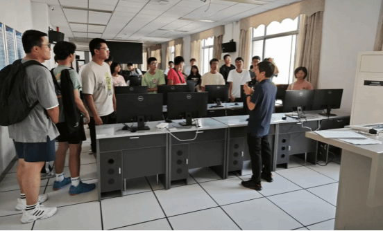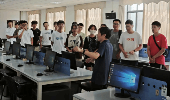 清晨的阳光透过窗户,映照在计算机学院的大厅,黄老师如约而至,带领同学们参观实验教学中心。