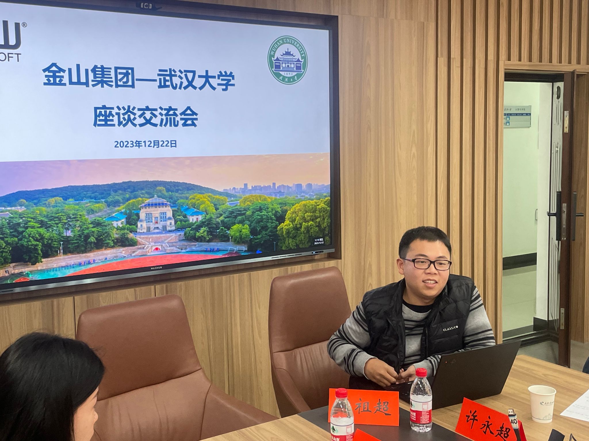 2023年12月22日,金山软件集团武汉总部党委书记、总经理助理张念一行来访学院,就未来与学院在博士培养和科研项目开展深度合作进行洽谈交流。杜博院长携学院教师代表出席座谈会。来访的嘉宾还有金山集团公共事务部主管王思雨,金山办公副总裁姚东、AI研发总监刘强、总裁业务助理王敏。会议由杜博院长主持。