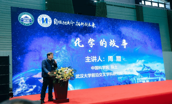 在“化学的故事”讲座中,周翔院士围绕化学与医学、材料、能源、农业、环境治理、国防等精彩故事带领同学们深入情境,参与交流,激发了他们对学术研究的热爱,坚定了他们走向优质学术殿堂的决心。他祝愿同学们“加入最好的大学,成就最好的人生”。