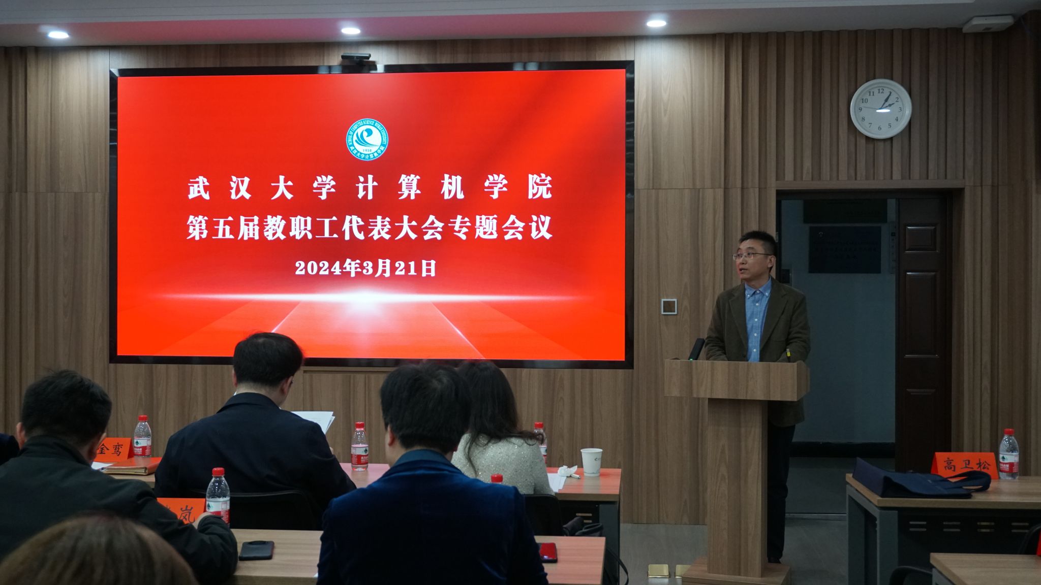 3月21日下午,计算机学院第五届教代会专题会议在学院B404会议室隆重召开,第五届教代会全体代表参加会议,会议由学院党委副书记、工会主席高卫松主持。