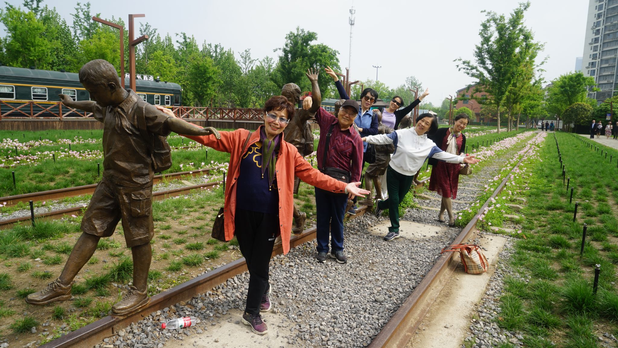 四美塘铁路遗址文化公园曾是货物集聚的武昌北站,如今改造成由铁轨、枕石、信号灯、绿皮火车车厢、蒸气和内燃机火车头等元素构成的怀旧文旅公园。老师们兴致盎然地参观了这些曾经辉煌的工业遗产,仿佛回到了上世纪七、八十年代。老师们或在月台上驻足与火车头合影,或行走在铁轨枕木上,感受着昨天与今天的对话,人与自然的和谐。