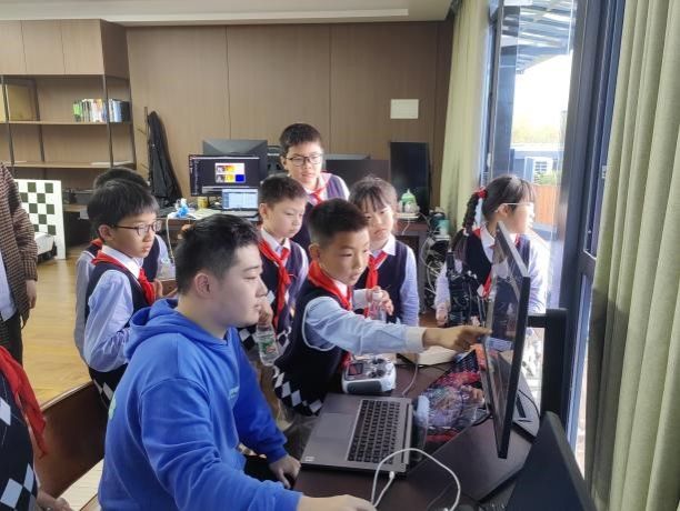 接着,学生们到达6楼科研团队实验室,身临其境地感受科学研究的浓厚氛围。在这里,他们与研究生团队的成员们亲切交流互动,通过同伴合作,操控智能驾驶模型越过重重障碍和关卡,让顶楼充满了欢声笑语,久久不愿离去。