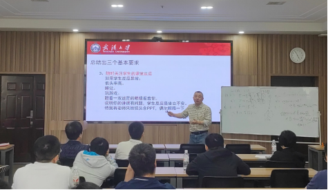 张曙光老师结合教学督导中发现的问题,与青年教师们分享了改进课堂教学的几条建议,提出课堂教学的三个基本技能,即清晰表达概念定义、口述内容要和PPT上标识的内容同步、随时关注学生的课堂反应,各位参赛教师表示受益匪浅。