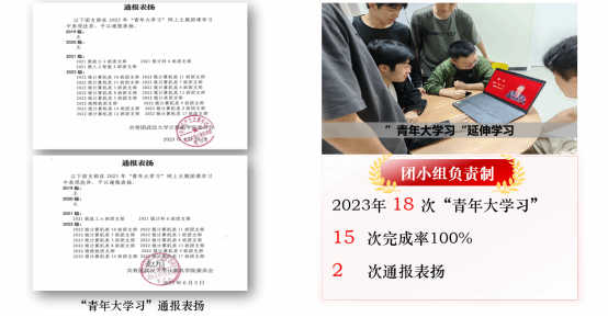 在特色制度的引领下,软工8班连续两年被评为先进班集体,连续两年“对标定级”评级为五星级,获评2022年计算机学院先进团支部。在学院“计科先锋”年度人物评选活动中,软工8班团支部也展现了强大的凝聚力和影响力,共有3人入选计科先锋候选人,其中有2人获得学术先锋、实践先锋称号。