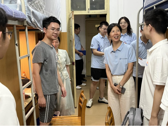 当晚七点,结束了一天的报到工作后,学院领导、全体本科生辅导员、班级助理和学生会团委学生干部前往宿舍探望新生,为他们送上关怀与问候。老师们详细询问了新生的情况,耐心解答他们的提问,并鼓励他们在大学生活的起点上要保持踏实的作风,勤奋好学,牢记“自强、弘毅、求是、拓新”的校训精神,在不断探索中增长知识,在实践中提升能力,努力成长为新时代的武大人。