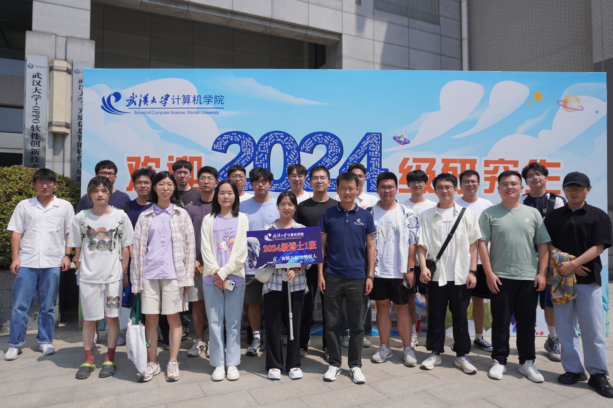 9月4日当天,研究生新生还以班级为单位,利用报告间隙与辅导员张元老师一起前往写有2024级全体研究生姓名的迎新喷绘前,拍摄了入学第一张班级合影。
