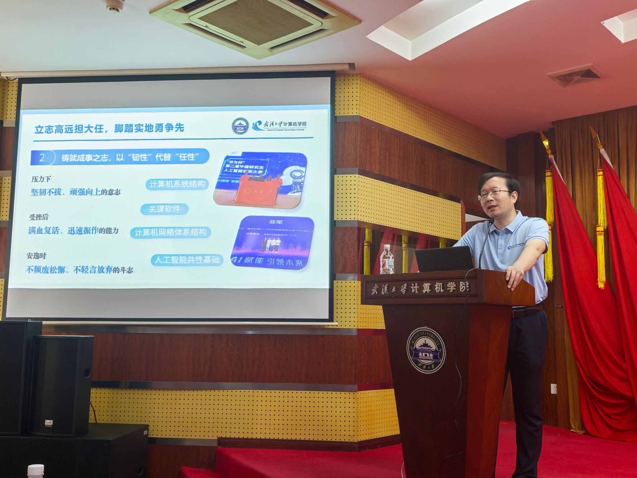 入学教育第一讲邀请到了计算机学院院长杜博。杜院长以“云程发轫正当时,奋楫扬帆再启航,立志高远担大任,脚踏实地勇争先”为主题,围绕学院基本情况与学院优秀院友,为研究生新生介绍了学院发展的历史沿革、学院建制、专业设置、师资队伍、平台建设、学科建设、人才队伍建设、科研成果、毕业生就业情况及杰出院友等,并对即将开展的研究生生活提出了要求与希望,同时祝愿同学们在珞珈山下求得真学问、学得真本领,以挺膺之姿赴青春之约。