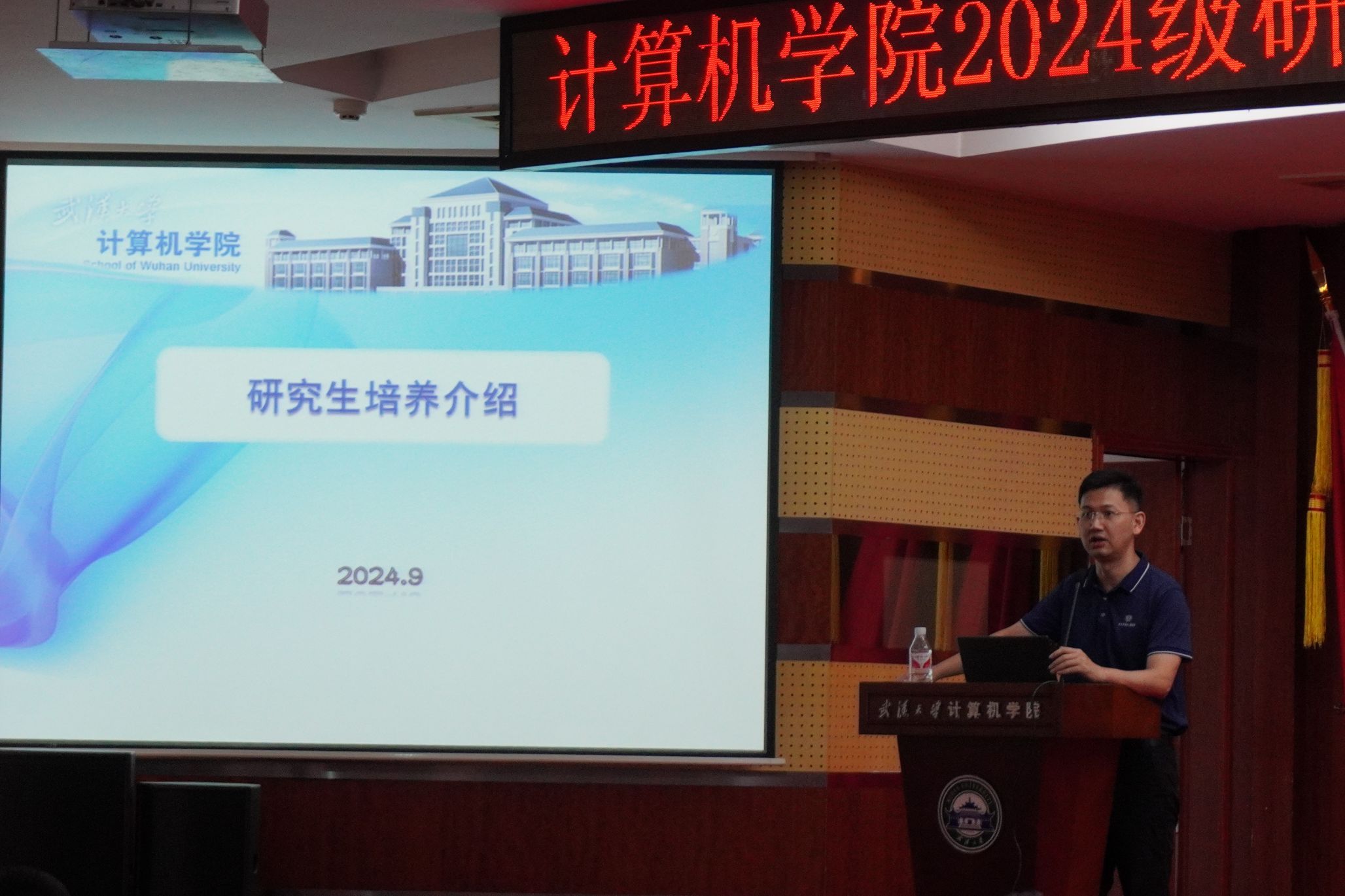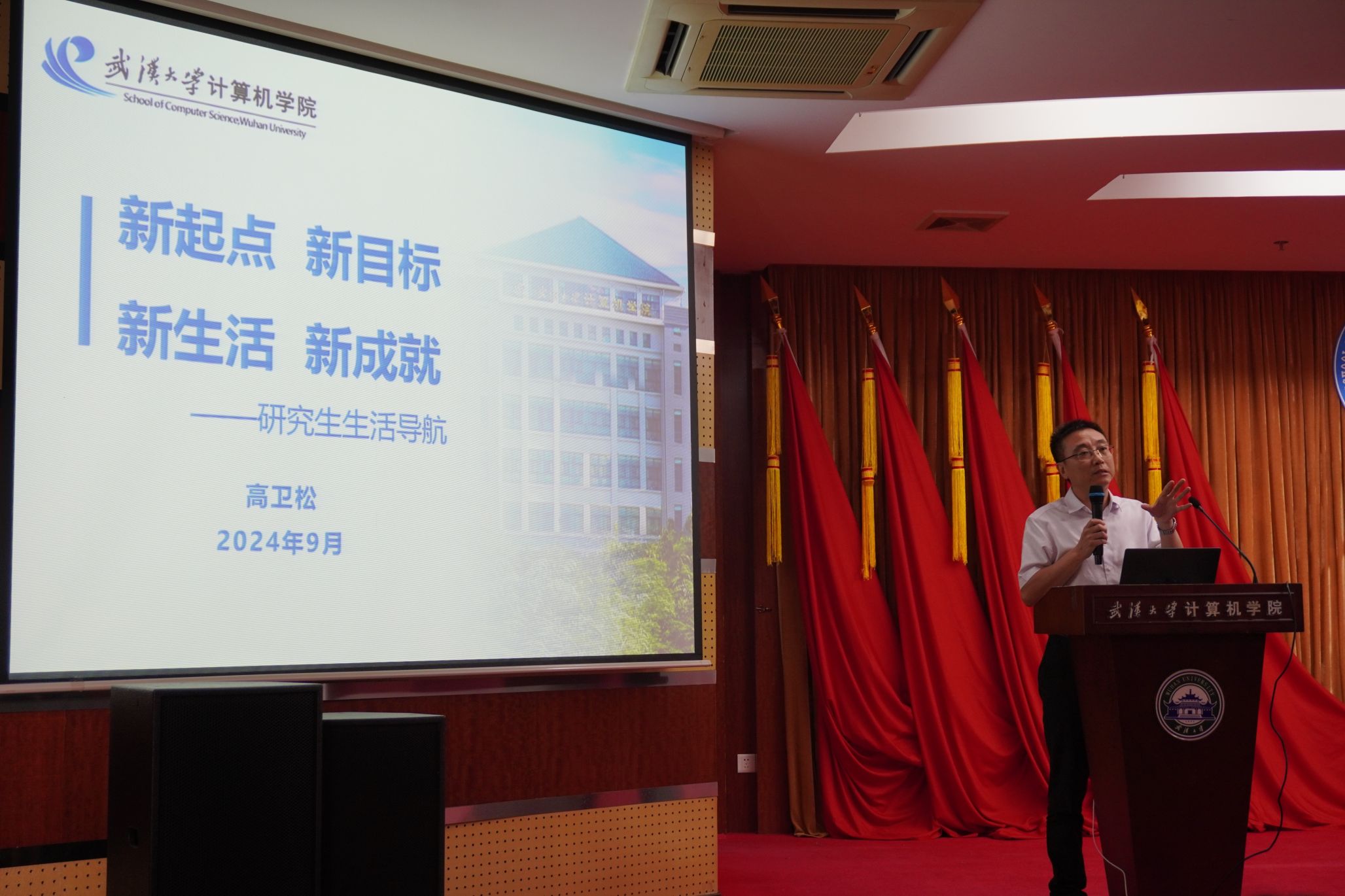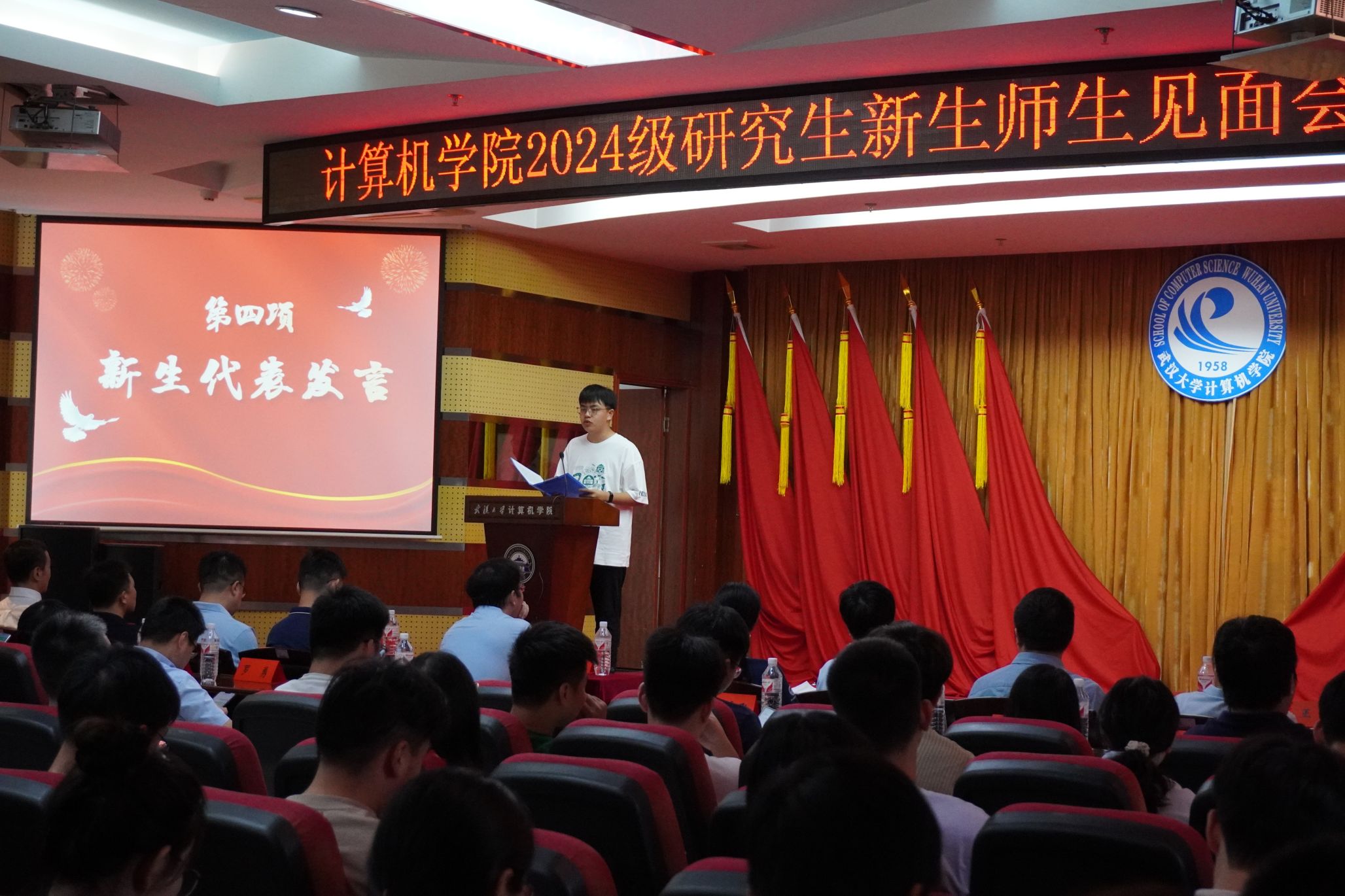首先,高卫松向与会领导老师介绍了珞珈山的新主人——计算机学院2024级研究生新生概况,并以班级为单位依次有请博士1班至4班和硕士1班至7班全体起立、挥手致意;并向研究生新生们依次介绍了教师代表、院领导、系主任、教学秘书及辅导员老师,与会师生聚精会神、热情洋溢,见面会场掌声不断、气氛热烈。