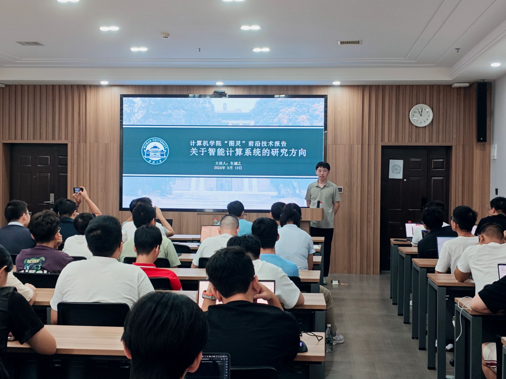 2024年9月19日,世界杯体彩启动“图灵”前沿技术系列报告活动。“图灵”前沿技术系列报告主要邀请院内青年教师就前沿领域做科研分享,以加强学院教师之间的交流,促进院内科研合作。“图灵”系列报告由教授会筹备,教授会主席彭智勇教授、江佳伟教授组织实施。第一次报告会由李瑞引、车越之老师主讲,吸引了80余名师生参加。本次活动由计算机学院副院长玄跻峰主持,江佳伟、梁鹏、李清安、伍春香、时向东等老师参加报告会。