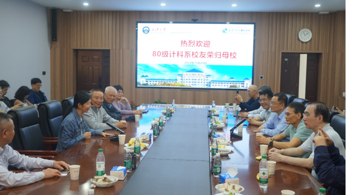 10月28日,80级计科系校友毕业40周年座谈会在计算机学院举行。院党委书记边金鸾、何炎祥教授参加座谈交流,武汉校友会计算机分会执行会长王全国、时任辅导员的朱立胜老师参加座谈会。近40名校友欢聚一堂,共叙师生情谊。