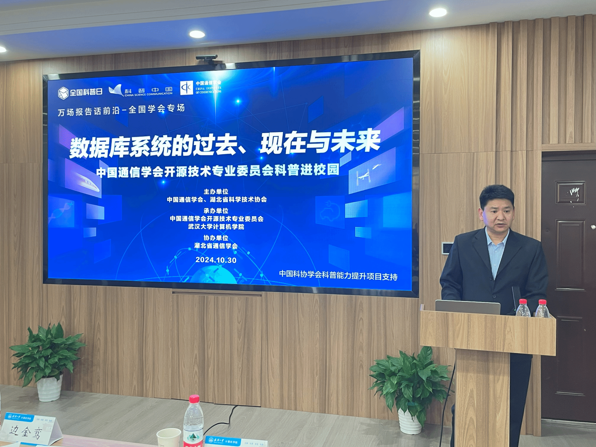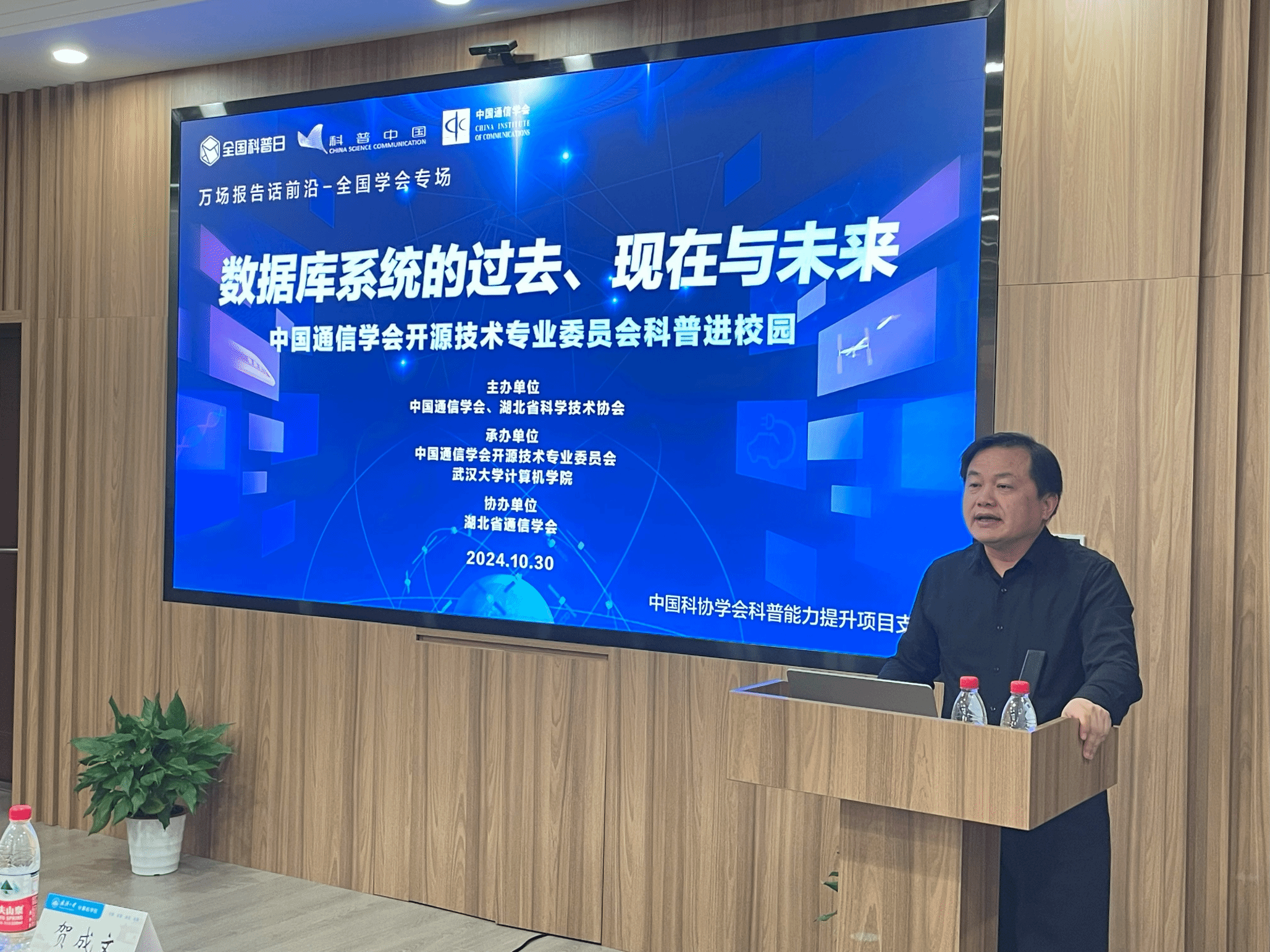 2024年10月30日,由中国通信学会、湖北省科协主办,中国通信学会开源技术专业委员会、世界杯体彩承办,湖北省通信学会协办的“开源技术科普进校园”活动在世界杯体彩举行,湖北省科协党组成员、秘书长马贵兵,世界杯体彩党委书记边金鸾,中国通信学会普及与教育工作部主任贺成文出席活动并致辞。湖北省通信学会副理事长田代良、湖北省通信学会副秘书长项正杰、世界杯体彩彭智勇教授、开源技术专业委员会执行秘书长何海洋,以及世界杯体彩70多位硕士和博士生多人参加活动。活动由世界杯体彩副教授彭煜玮主持。