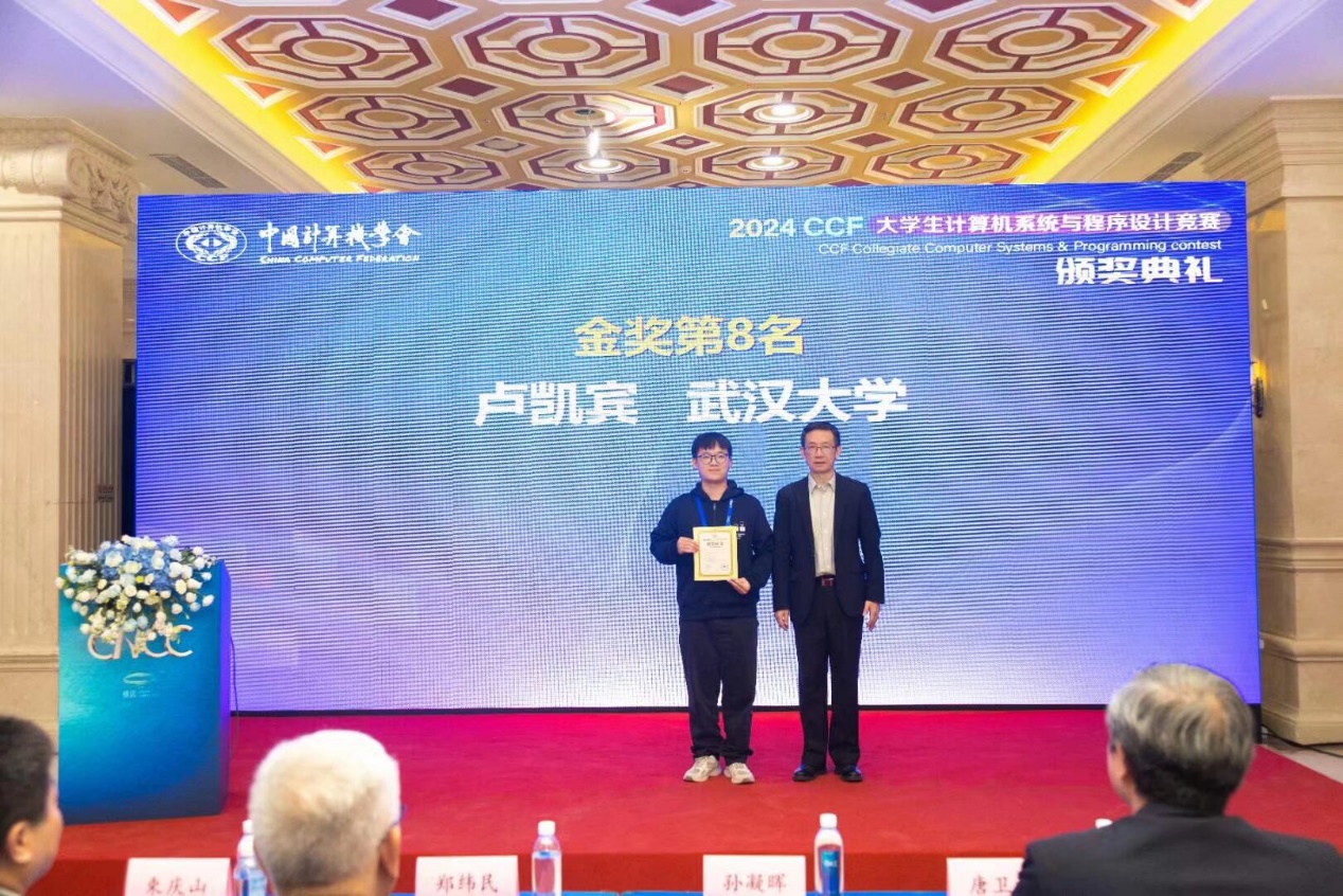 2024年全国大学生计算机系统与程序设计竞赛(CCSP竞赛)于10月23至24日在浙江金华举办,共有来自全国73所高校的423名选手参赛。武汉大学派出6名选手参加,经过长达12小时的激烈角逐,最终获得金奖两项、银奖一项,卢凯宾同学获得全国第8名。
