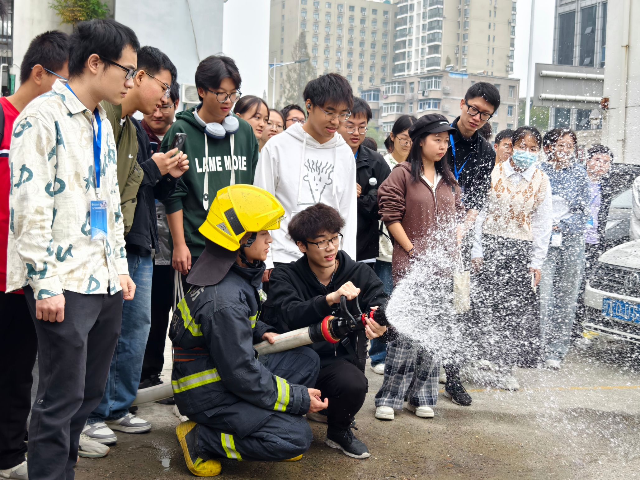 在随后的实操和展示环节中,消防员首先向师生们展示了伸缩梯、挂钩梯攀爬等消防科目表演和技能,当看到消防员敏捷的爬上训练塔的瞬间,在场师生用掌声向消防员娴熟的技术表达敬佩之情,向火场中最美的逆行者致敬。随后,消防员启动消防灭火车并邀请同学们体验消防水枪,体验期间也向同学们讲解了不同水枪的特点以及操作要领,同学们纷纷上前体验,感受操作灭火水枪的快感。