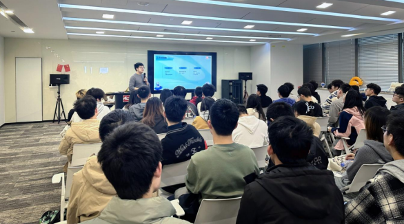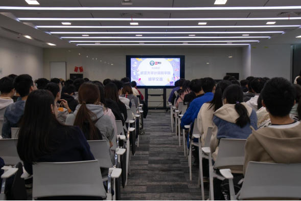 金山集团/孵化中心/游戏开发工程师,兼武大校友杨子航也与同学们进行了交流。他讲解自己在游戏开发中的职责,并结合实际工作经历,为有意进入游戏行业的同学提供了实用的入门建议。