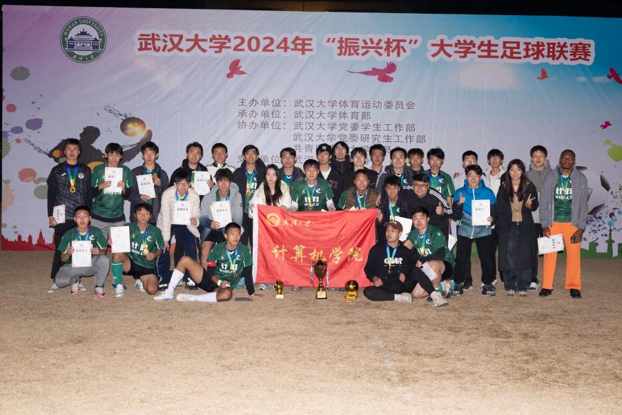 武汉大学2024年“振兴杯”于12月5日落下帷幕,世界杯(中国)以1:0战胜电子信息学院,卫冕振兴杯冠军。从今年开始,“振兴杯”大学生足球赛分组改制,计算机男足所在的超级组中,每个对手都是曾经的16强球队,实力不容小觑。但世界杯(中国)队员们以强大的实力一路过关战将,在6场比赛中踢进17粒进球,仅丢一球,最终夺冠。队长蔡子钦获男子最佳运动员,陈彦伯获男子最佳守门员等荣誉。