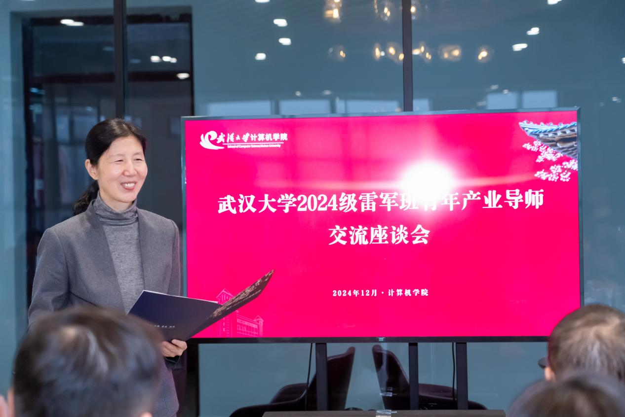 2024年12月26日下午,2024级雷军班首场青年产业导师见面会在校友之家成功举办。小米公益基金会执行秘书长刁美玲、小米公益基金项目经理李奇、校友事务与发展联络处副处长金诚、计算机学院党委书记边金鸾、党委副书记金娟、本科生工作办公室主任于雅梦以及雷军班辅导员胡仲淹、教学秘书刘旻参加本次见面会,会议由人工智能学院副院长(主持工作)、2024级雷军班班主任夏桂松教授主持。