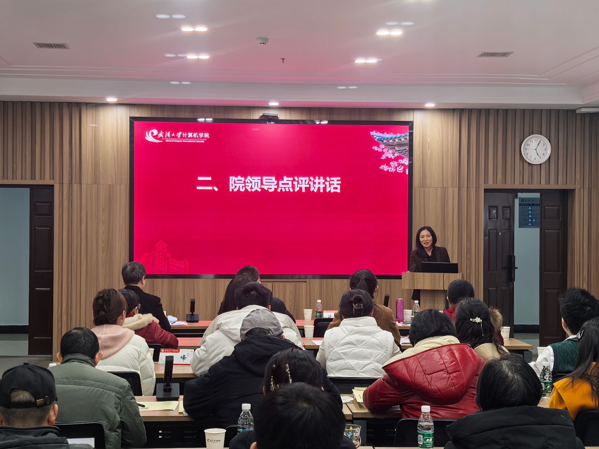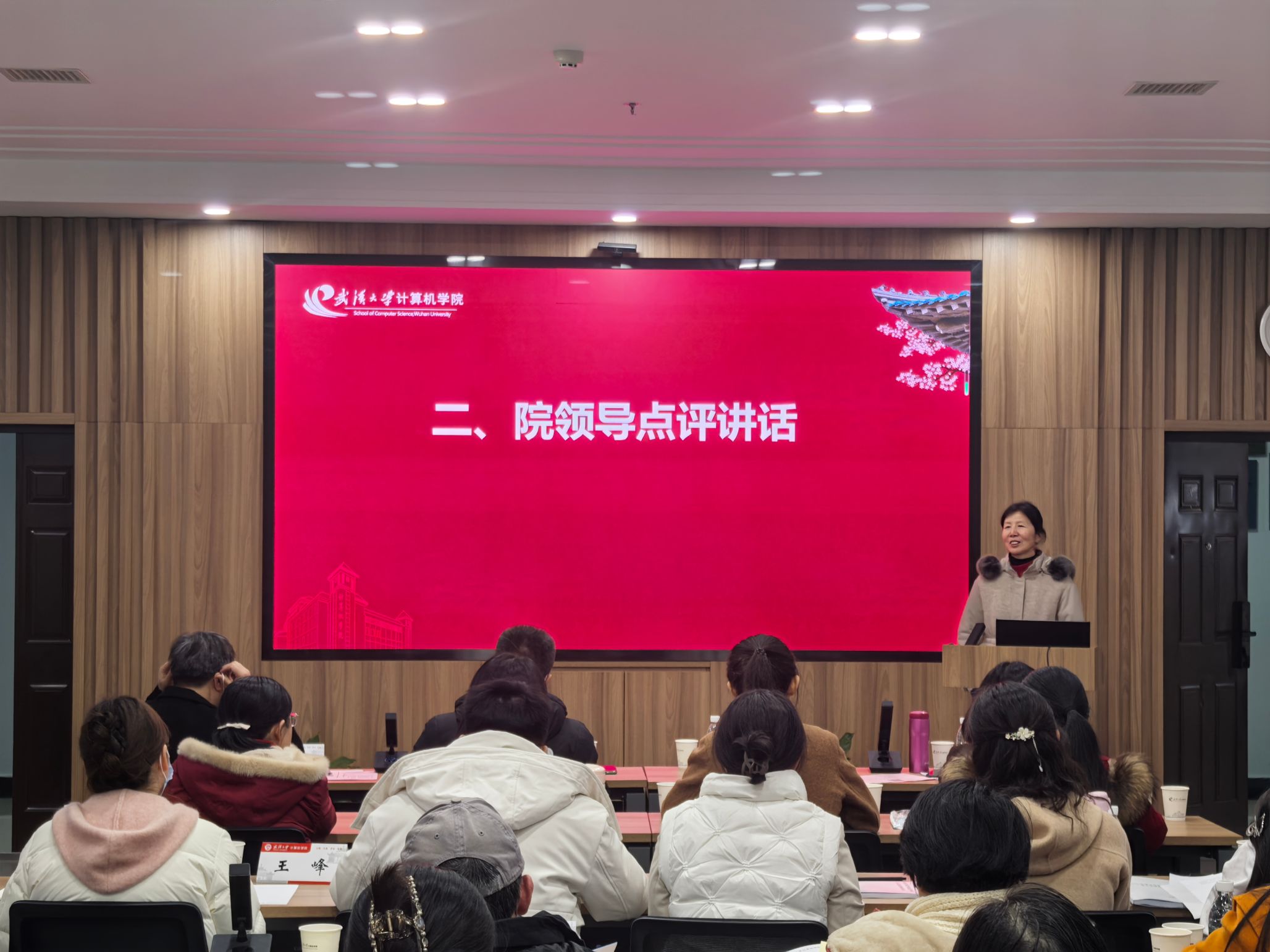 党委书记边金鸾作总结讲话。她表示,2024年学院取得了可喜的成绩:人才培养质量开创新局面、科研成果再获新突破、高层次人才队伍建设再创新高度、党建与思想政治工作呈现新气象。这些成绩的取得,与全体党政管理干部的努力和贡献密不可分,代表学院对大家一年来的辛勤工作表示感谢!同时,面对争创一流的目标以及繁巨的改革任务,对全体党员提出了工作要求和期望:一要善于学习,特别是要学习新的理论、新的政策,提升政治素养,提高思想认知;二要善于运用新工具、新方法,提升工作效率;三要善于思考和创新,在实践中提升工作能力。通过思想政治锤炼、业务素质能力提升,大家拧成一股绳,为实现“建设一流的计算机学院”这一共同目标踔厉奋发,勇毅前行。