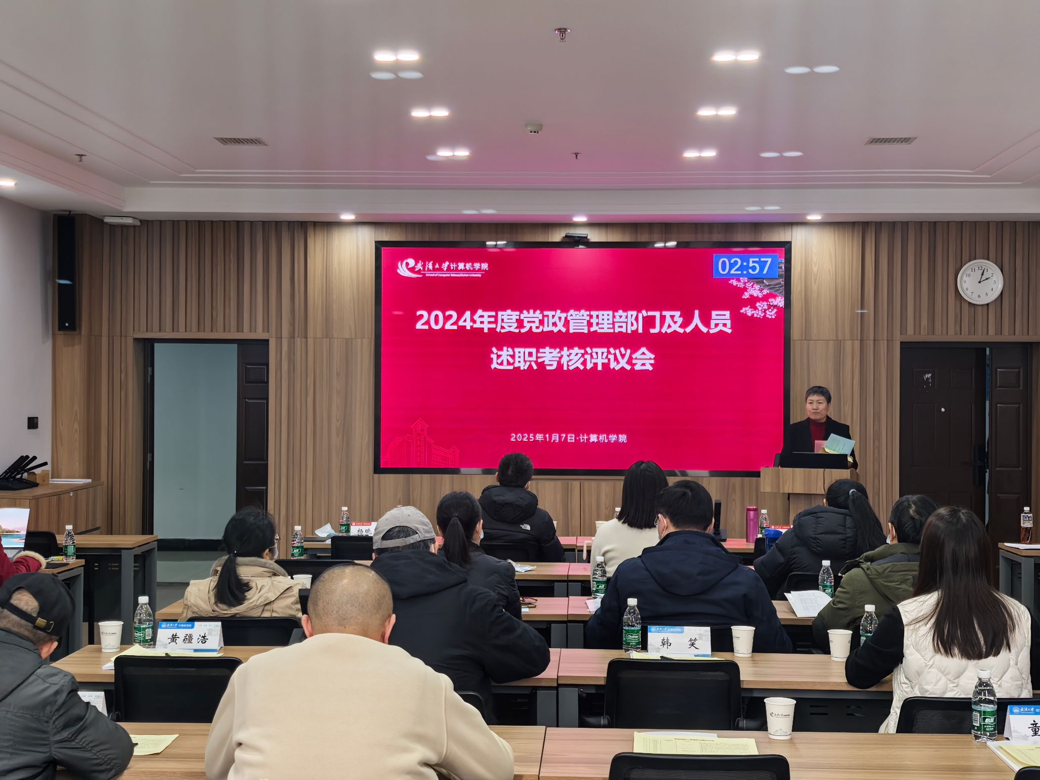2025年1月7日下午14:00,计算机学院在院B404会议室召开了2024年度党政管理部门及人员述职考核评议会、办公室党支部组织生活会及党员民主评议会。会议由计算机学院纪委书记、办公室党支部书记杨晓岚主持。