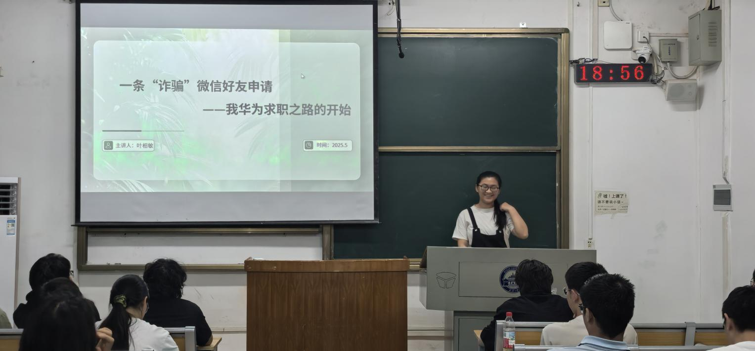 5月27日晚,计算机学院在信息学部1教313教室举办校招求职经验分享会,邀请到2021级软卓班叶相敏、2021级计卓班彭锐两位同学分享校招求职经验,为60名低年级同学们提供校招指导。