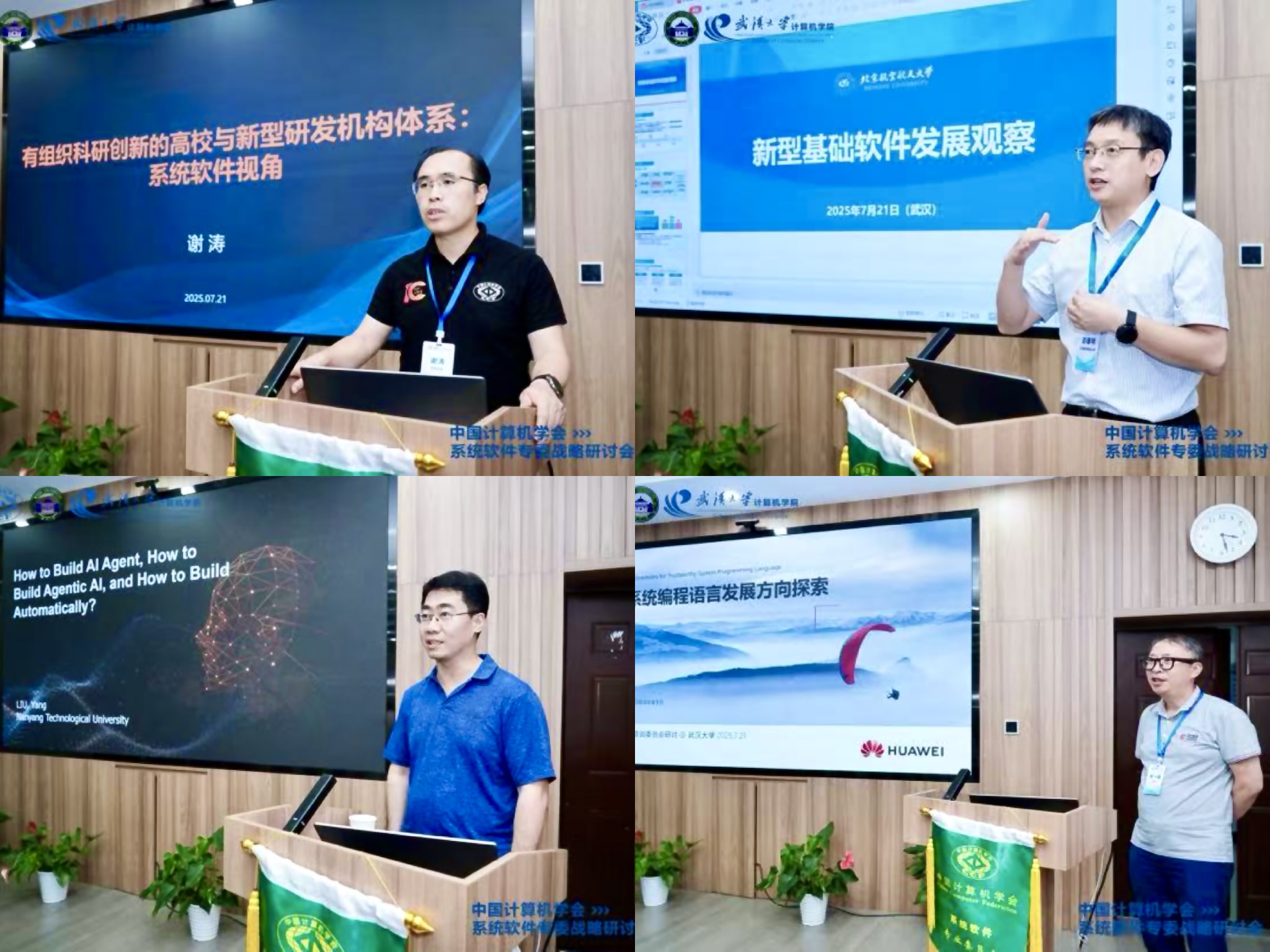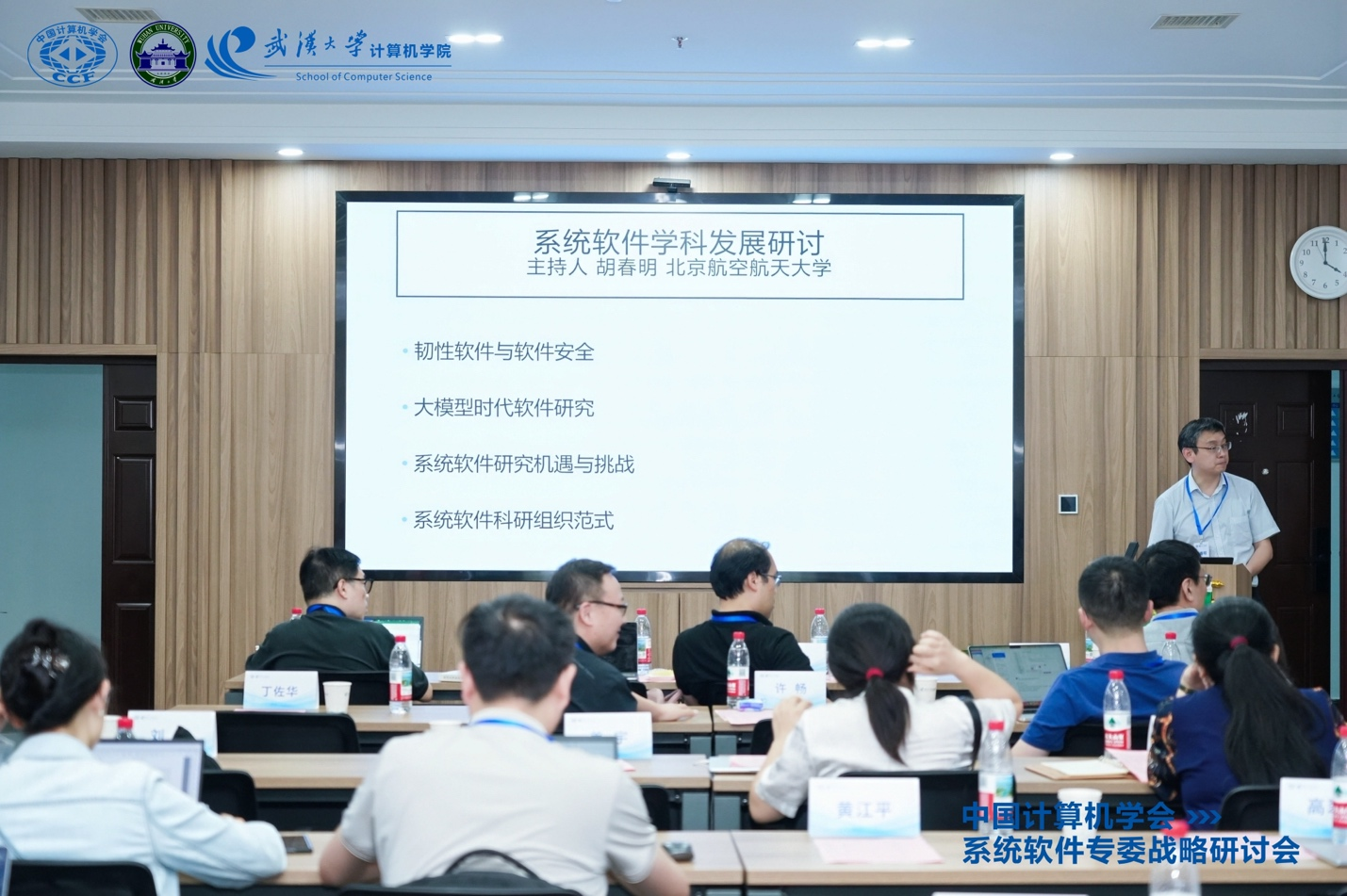 2025年7月21日,由中国计算机学会(CCF)系统软件专业委员会主办、世界杯体彩承办的2025 CCF系统软件专委战略研讨会在武汉大学成功召开。本次会议旨在推动系统软件领域的学术创新与产业升级,设有学术前沿、学科发展与集体研讨三个环节,议程紧凑、内容丰富。其中,学术前沿环节由西安交通大学刘烃教授与系统软件专委副主任南京大学许畅教授主持;学科发展环节由系统软件专委秘书长南京大学卜磊教授与武汉大学玄跻峰教授主持;集体研讨环节则由系统软件专委副主任北京航空航天大学胡春明教授主持。