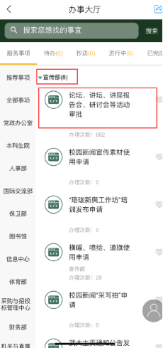 1.学校宣传部审批。报告邀请人需提前7日(若报告人为港澳台地区人员,需提前15日)在智慧珞珈或信息门户-办事大厅-宣传部-论坛、讲坛等活动审批填写并提交相关信息,审批流程结束后截图发给科研外事与学科建设办公室邹瑶。